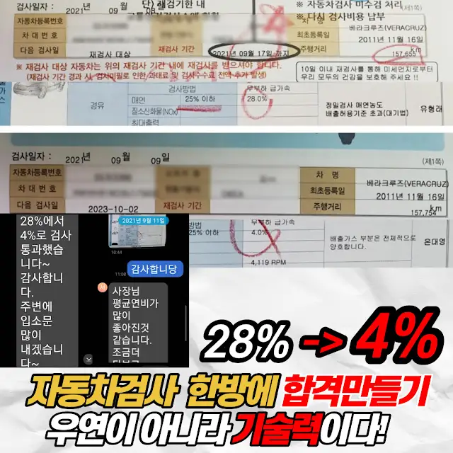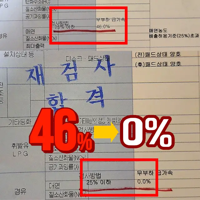 검사 직전 주입하고 rpm 2000~2500으로 15km 정도 주행 후 바로 검사
