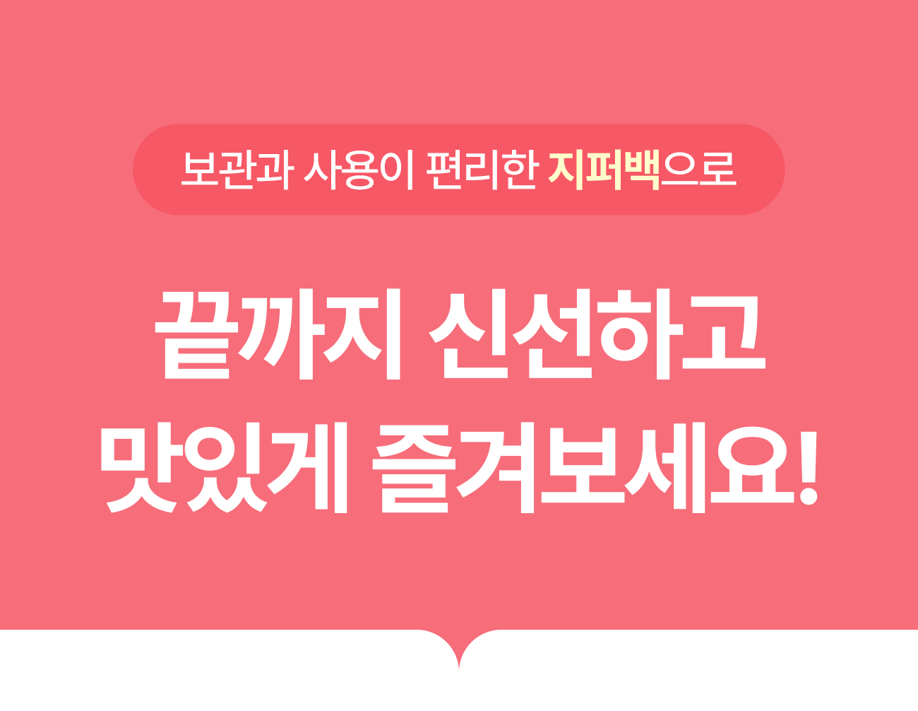 개붕 후에는 반드시 밀봉하여 냉장보관 해주시고 가급적 빠른 시간내에 드십시오.