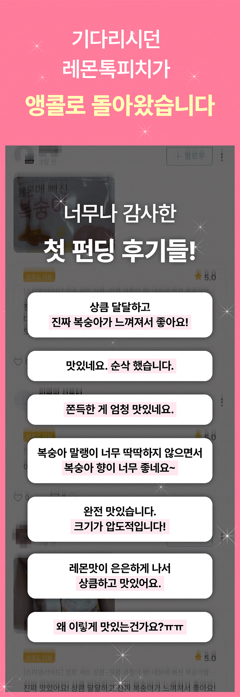 레몬톡피치 60g 38EA + 고구마당근 말랭이 70g 3EA 구성