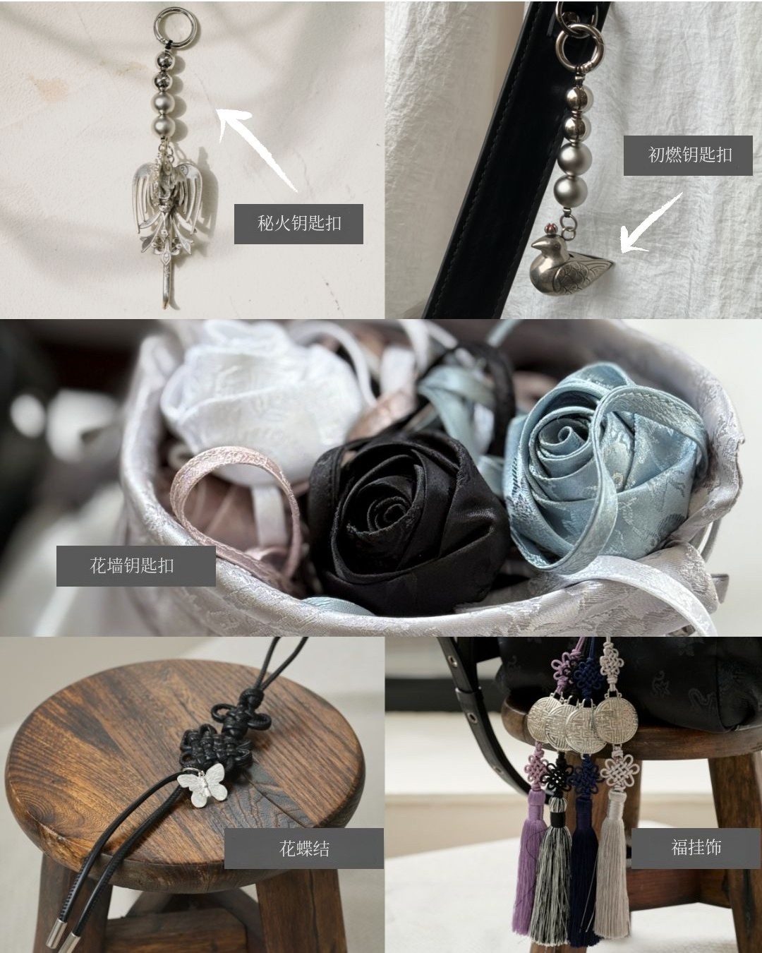花墙钥匙扣采用传统韩服面料,全部手工制作。