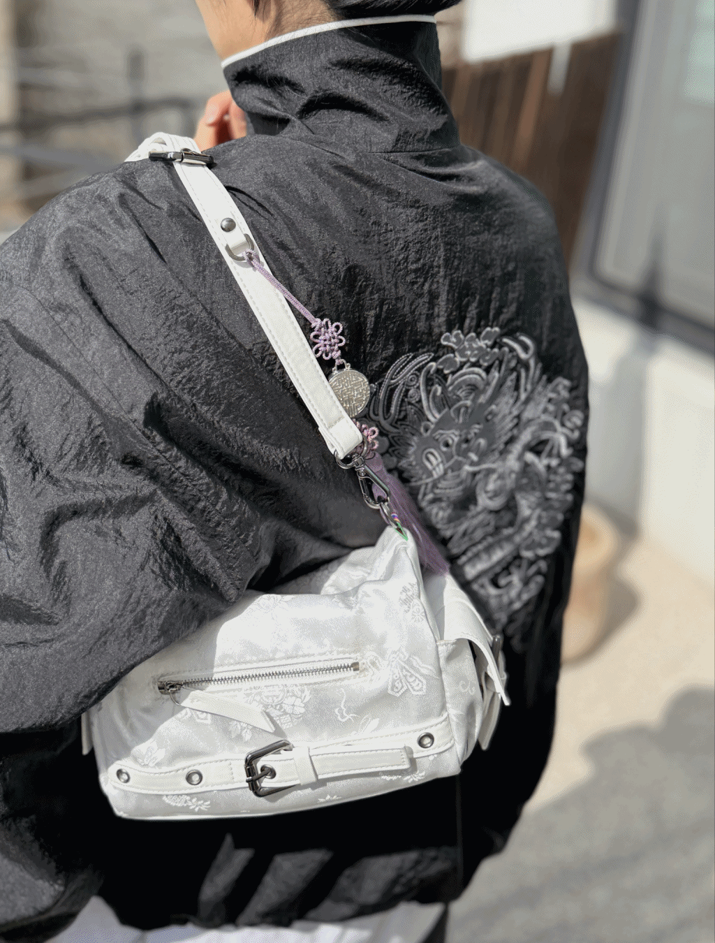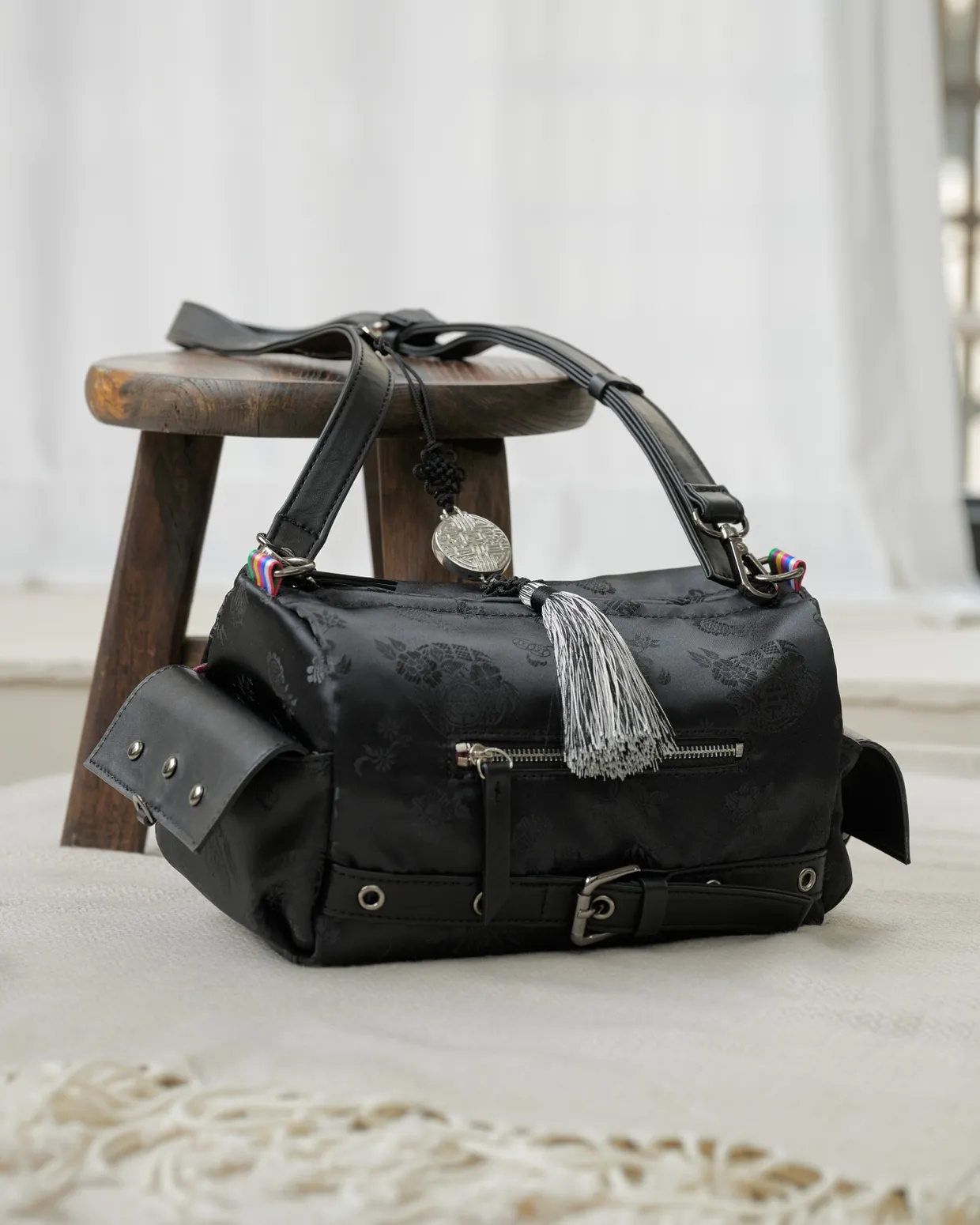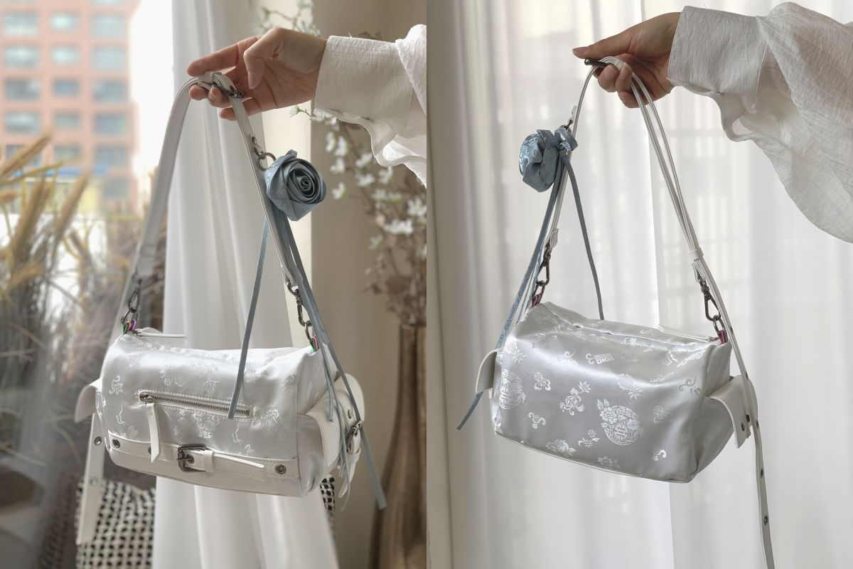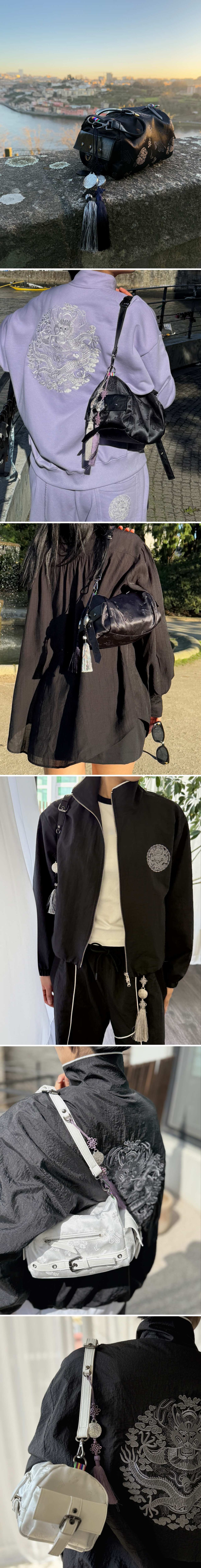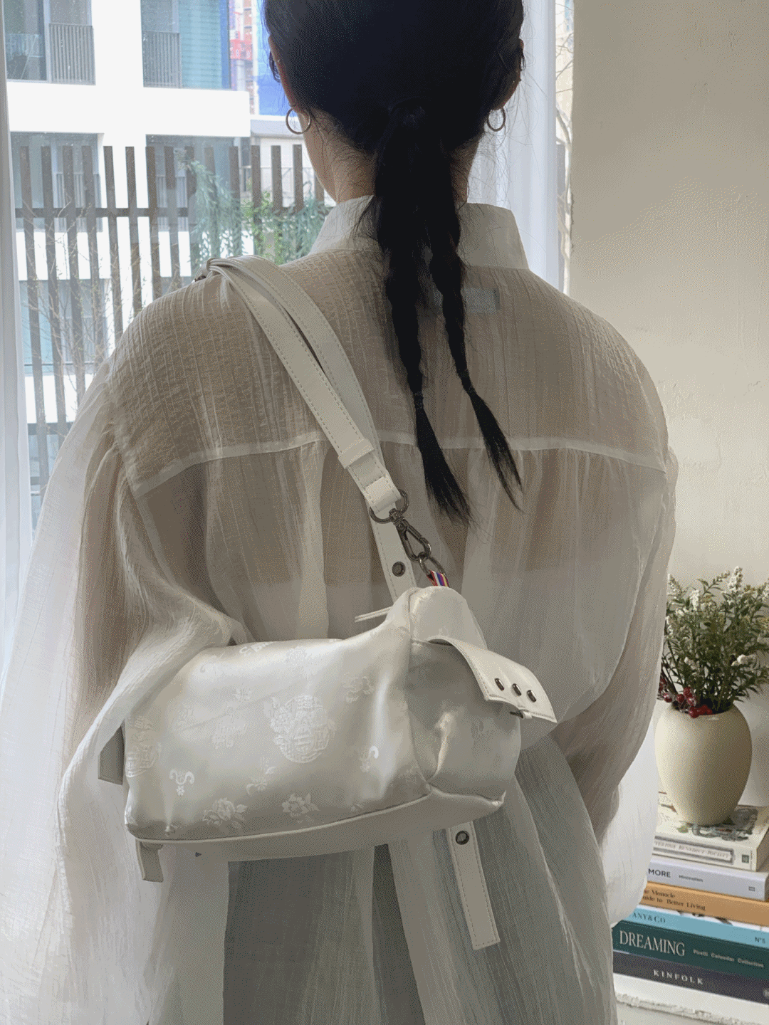 采用传统韩服面料,展现高贵独特的设计。包袋面料图案蕴含独特的传统纹样,更加提升包袋的美感!融合韩服面料特有的美感与素皮的时尚感 的设计。