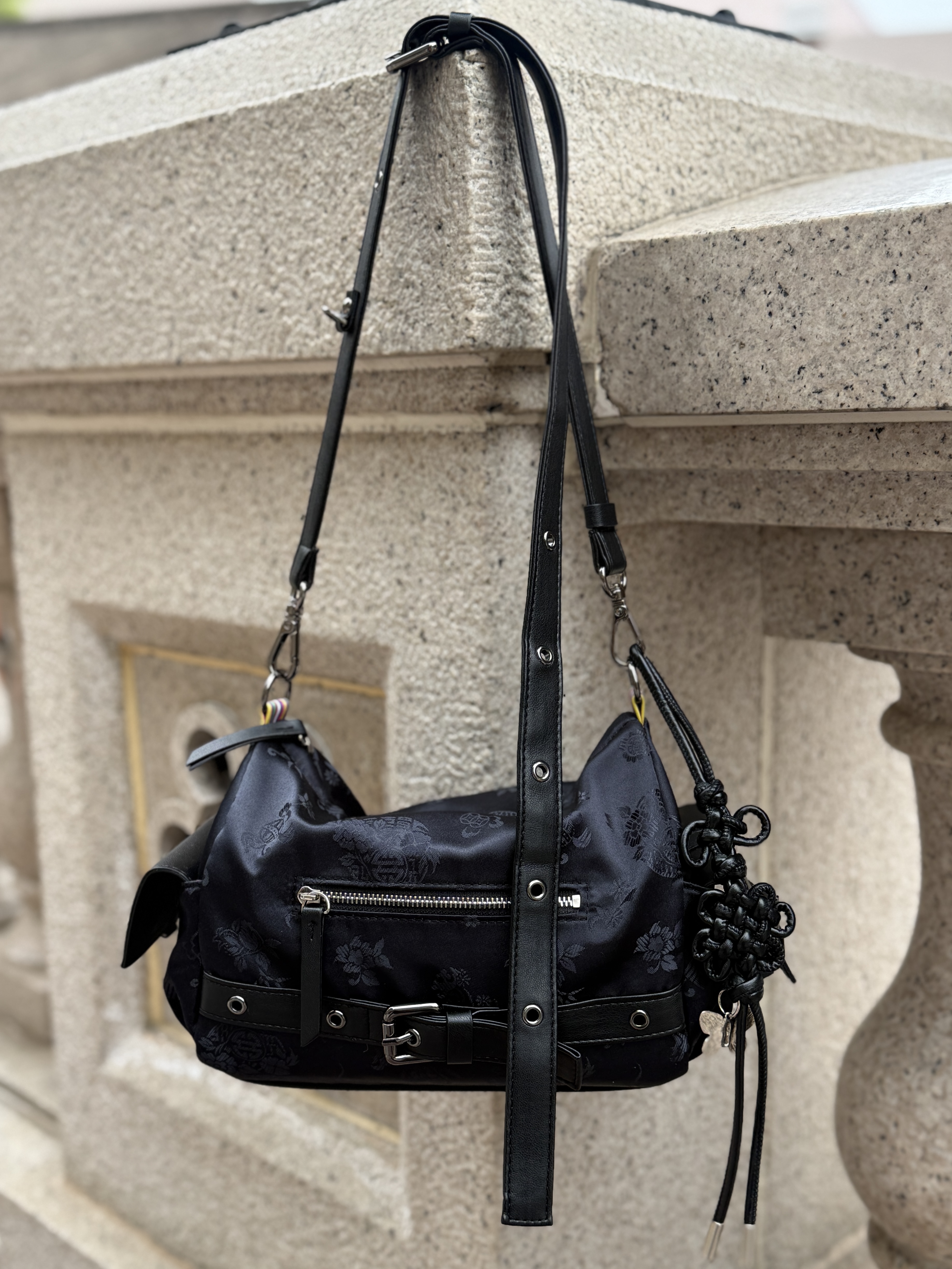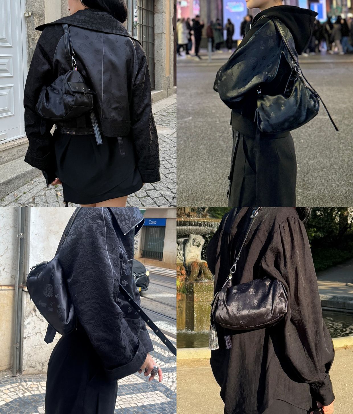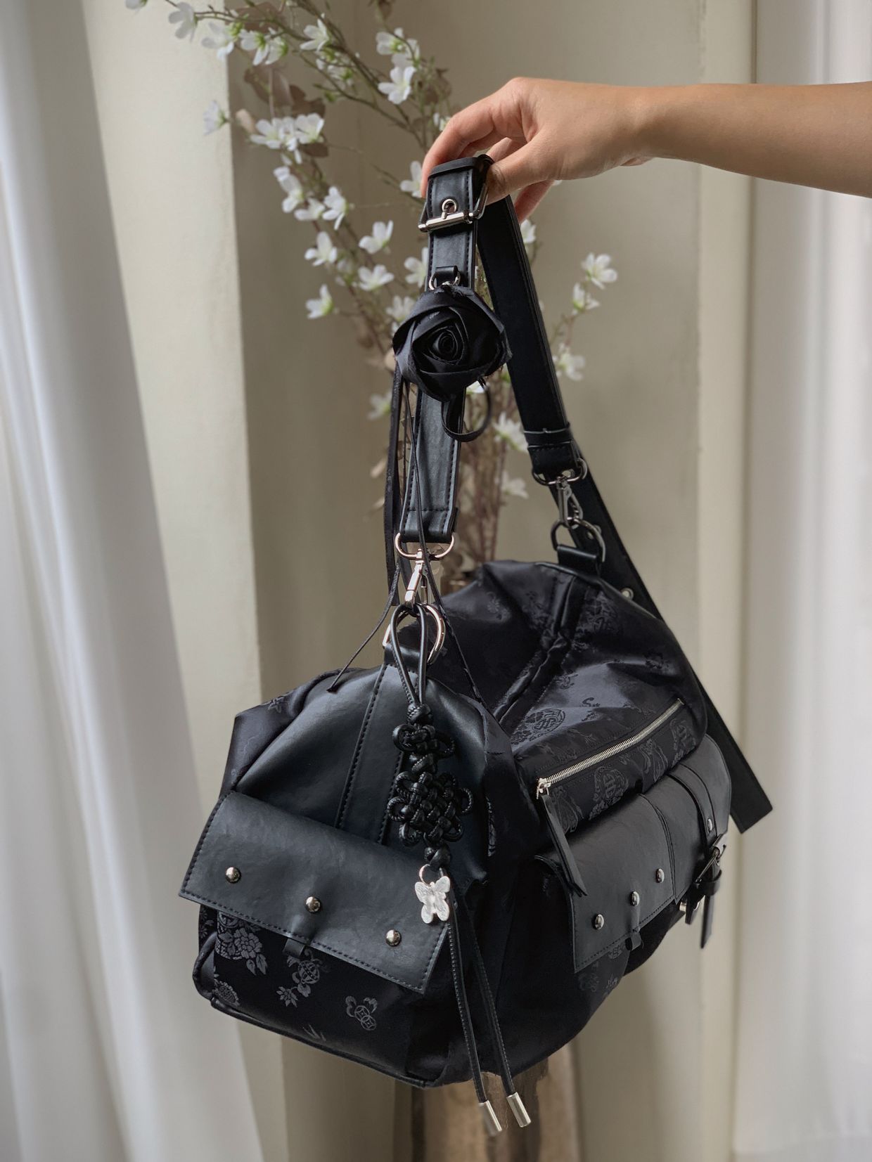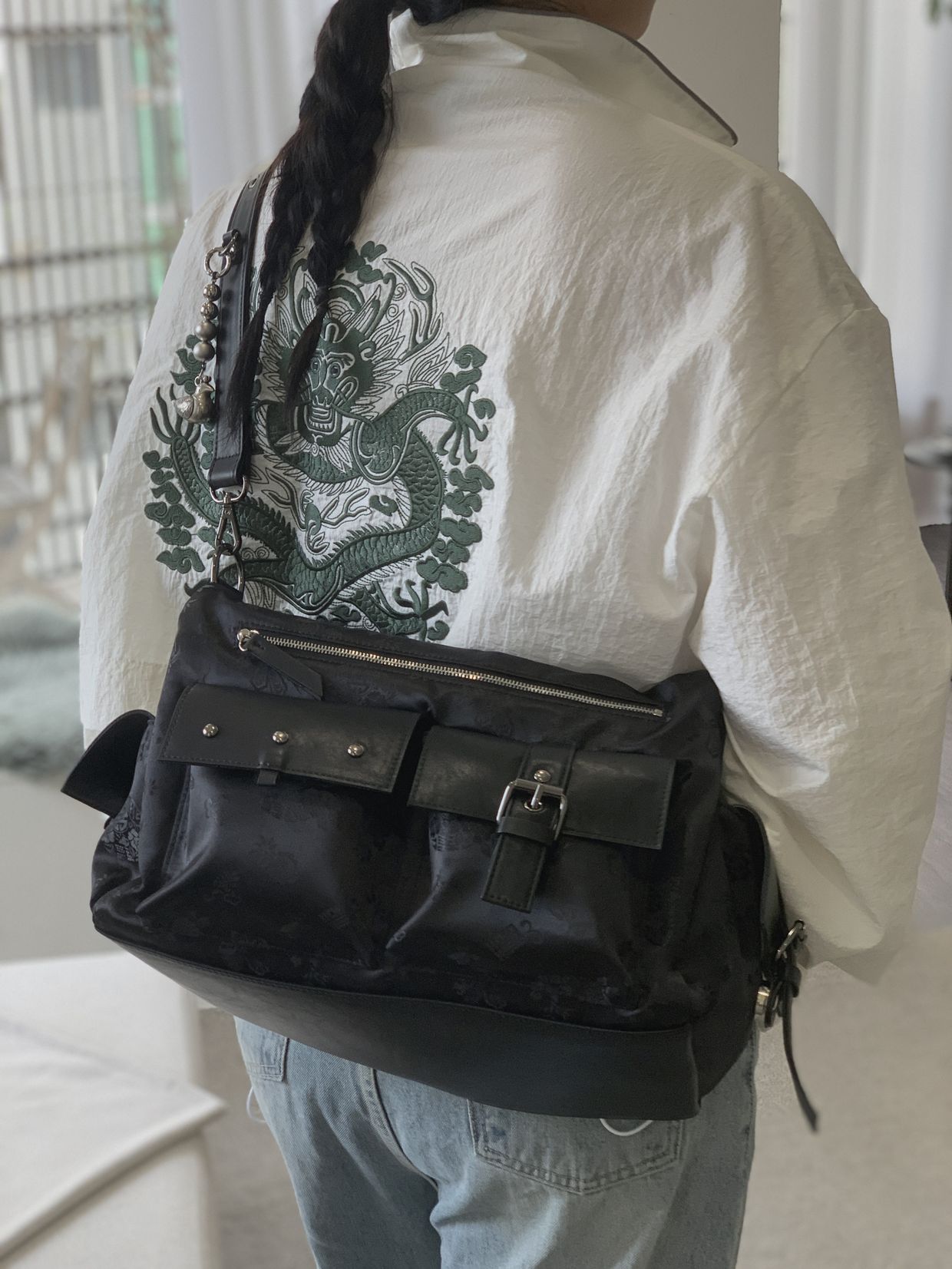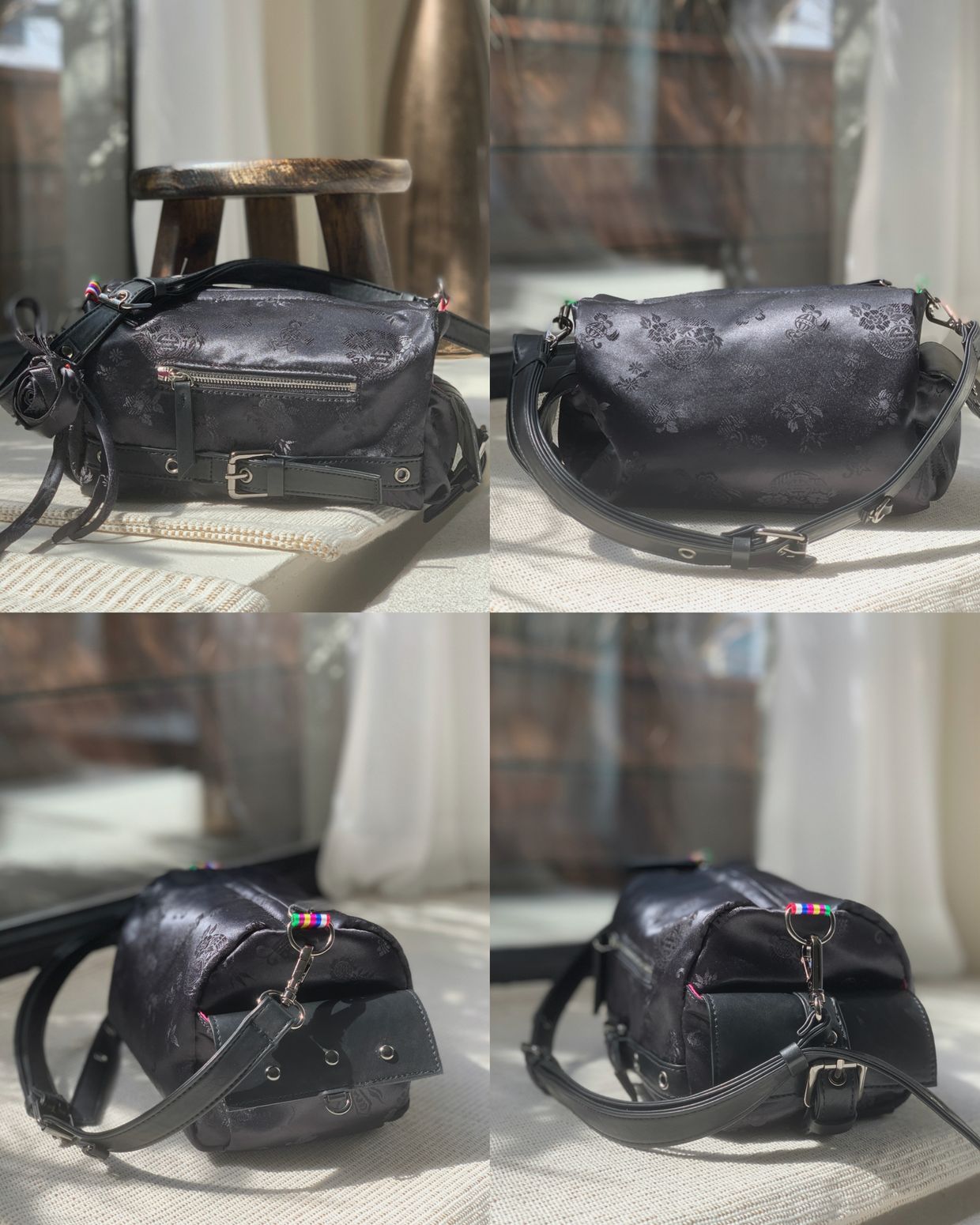 采用传统韩服面料,展现高贵独特的设计。包袋面料图案蕴含独特的传统纹样,更加提升包袋的美感!融合韩服面料特有的美感与素皮的时尚感 的设计。