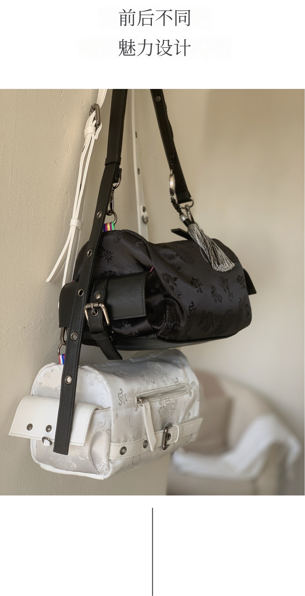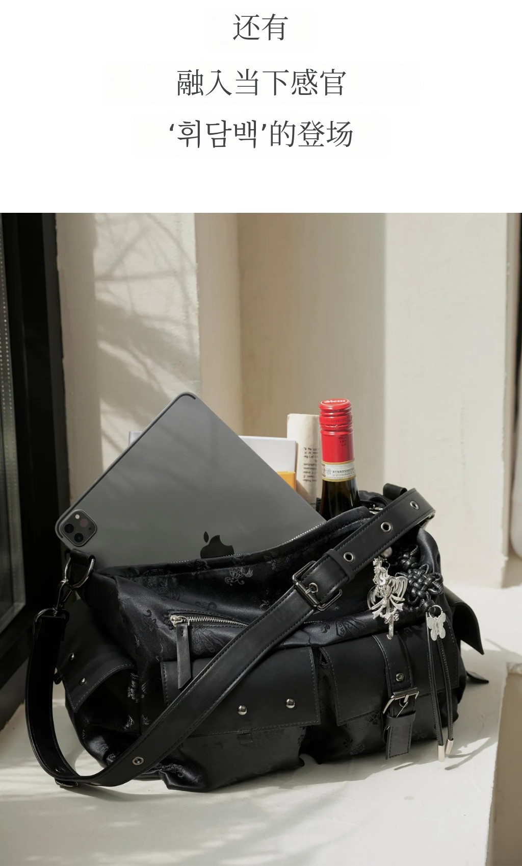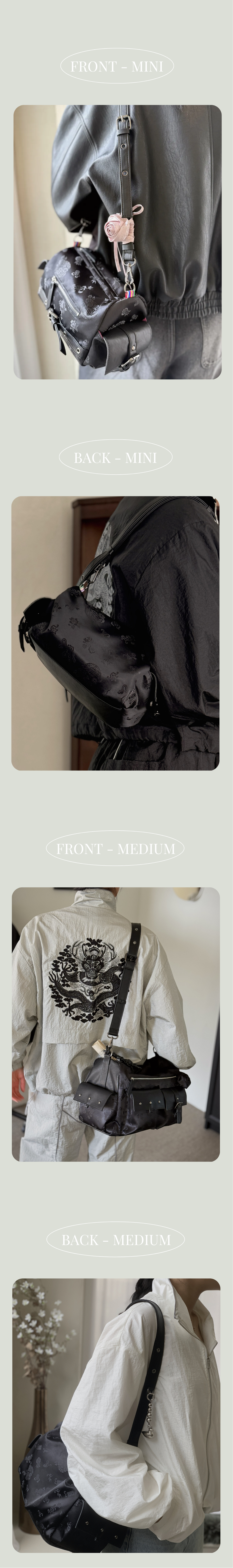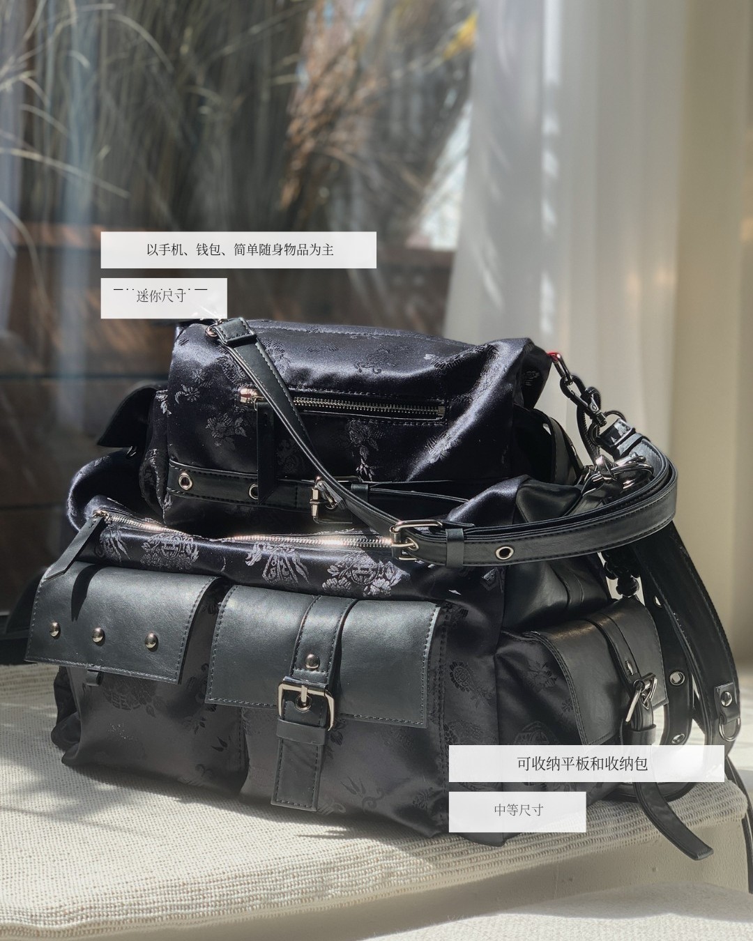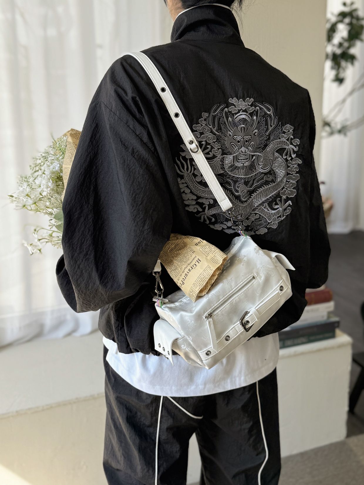 采用传统韩服面料,展现高贵独特的设计。包袋面料图案蕴含独特的传统纹样,更加提升包袋的美感!融合韩服面料特有的美感与素皮的时尚感 的设计。