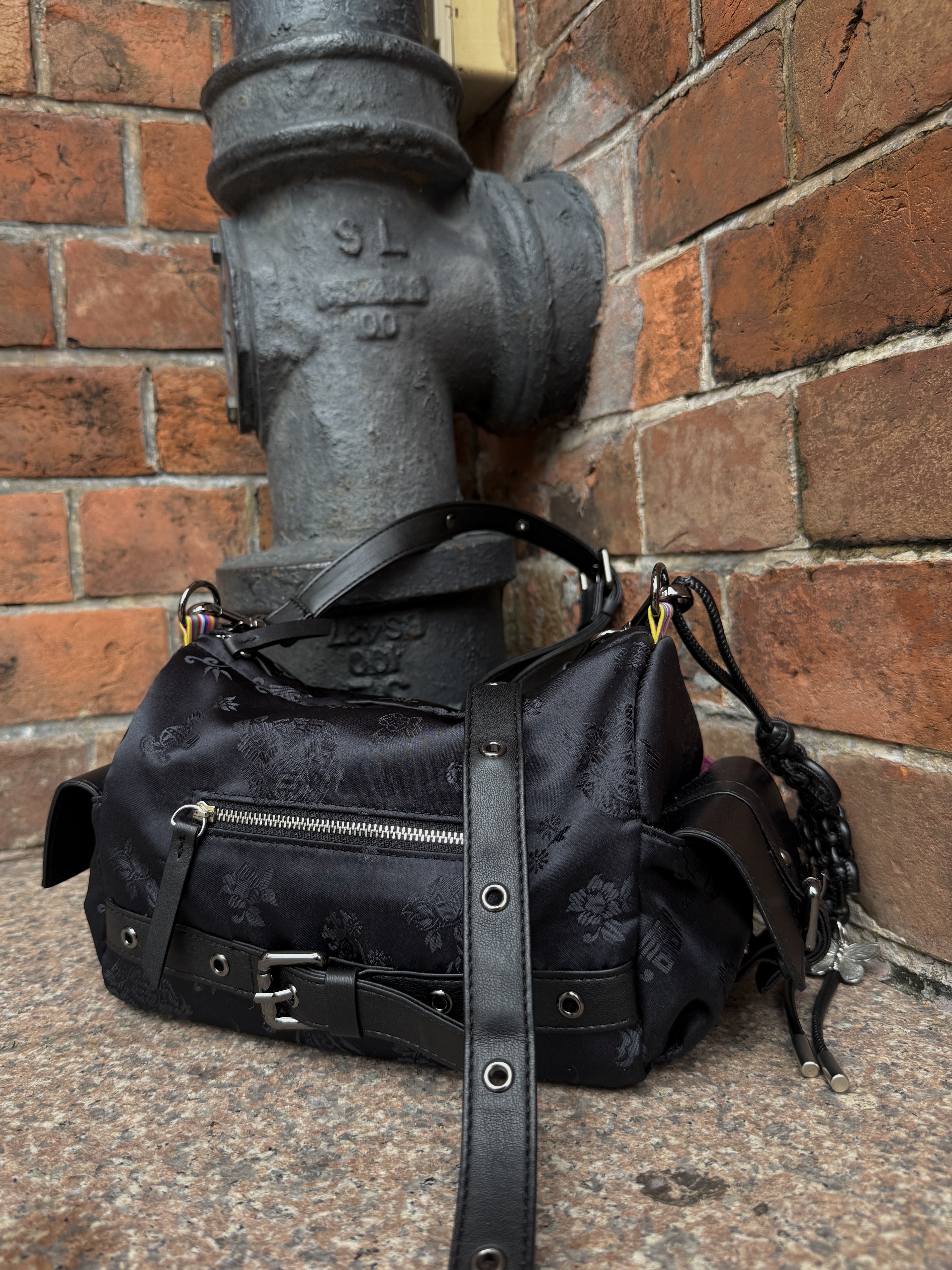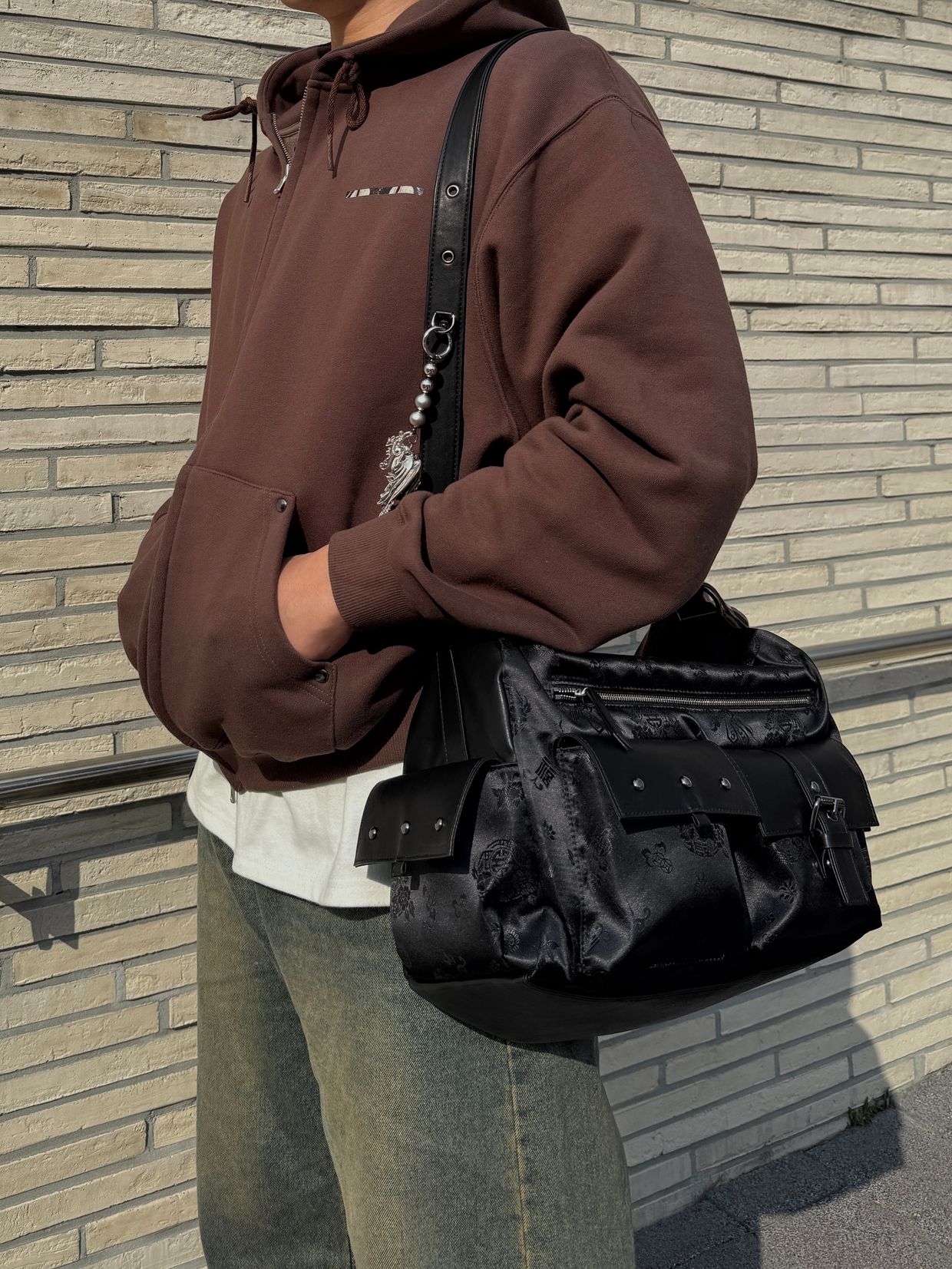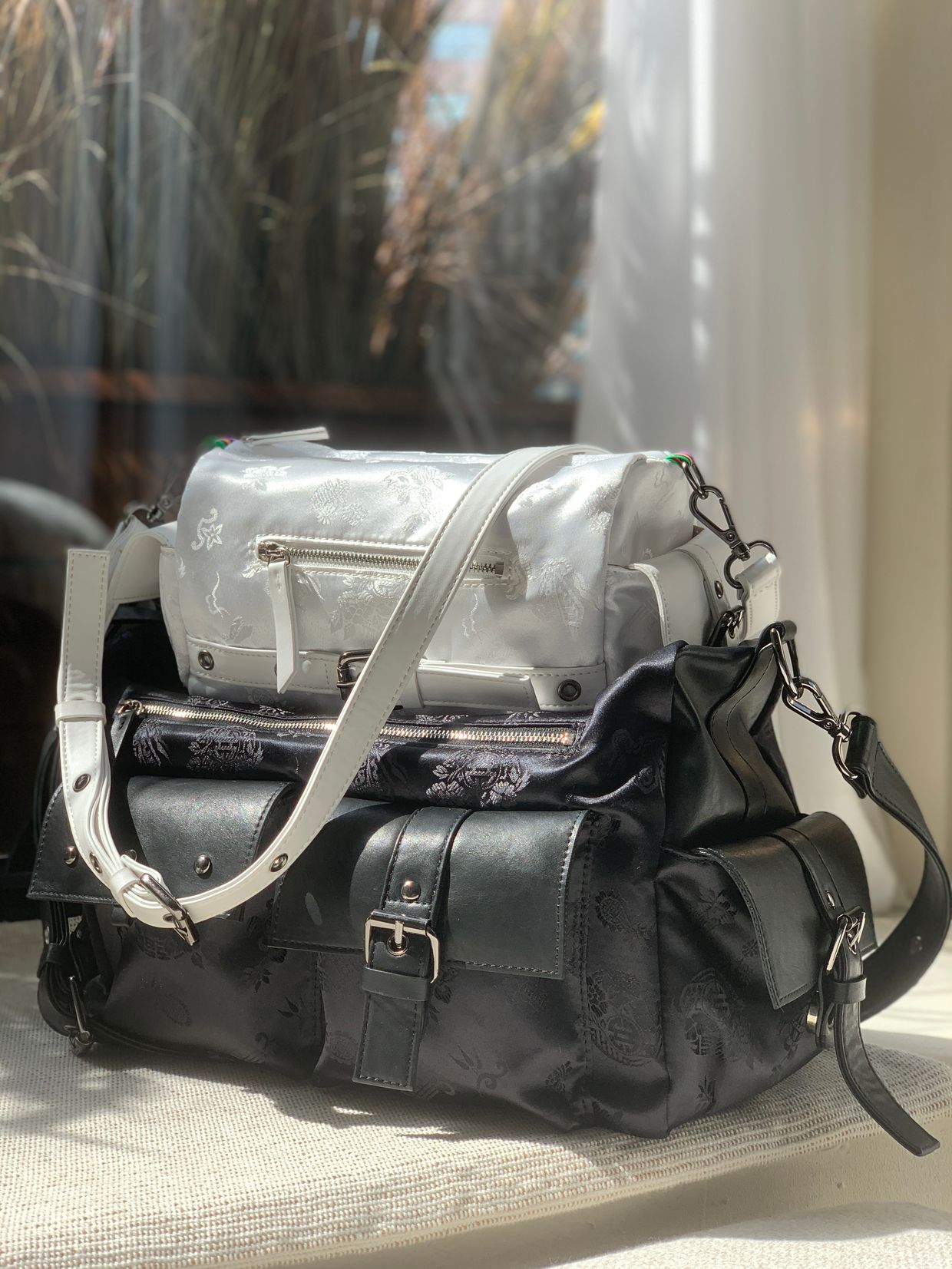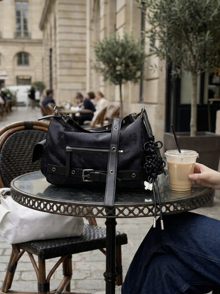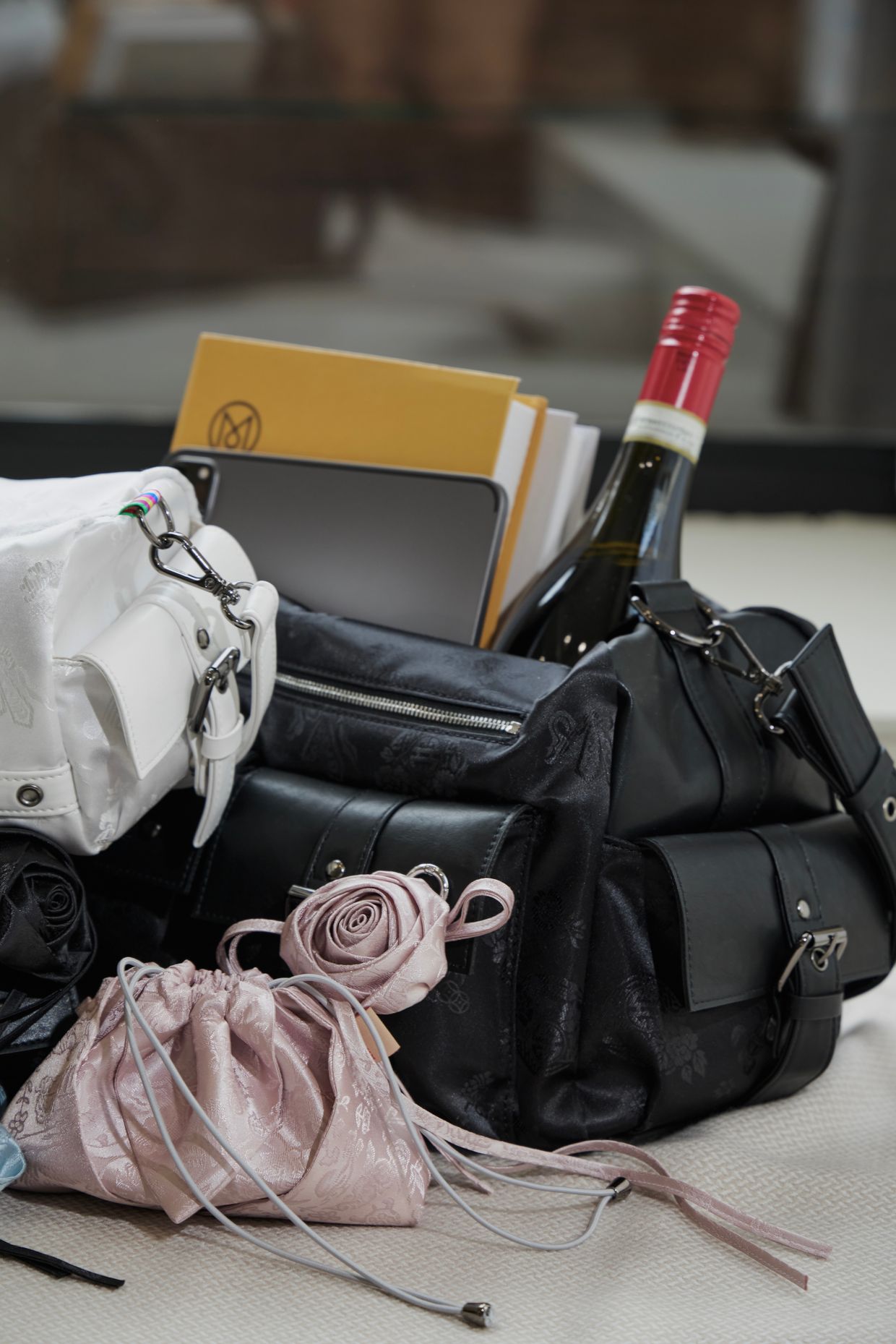 采用传统韩服面料,展现高贵独特的设计。包袋面料图案蕴含独特的传统纹样,更加提升包袋的美感!融合韩服面料特有的美感与素皮的时尚感 的设计。