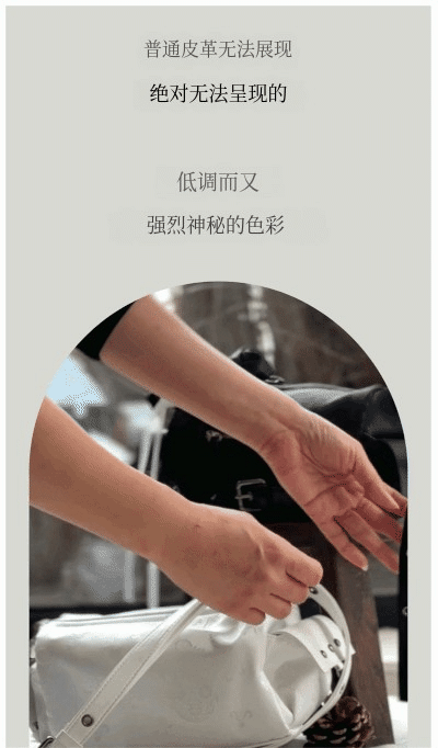 - 通常情况下,素食皮革无法水洗,若有污渍,请用柔软的布轻轻擦拭后处理。