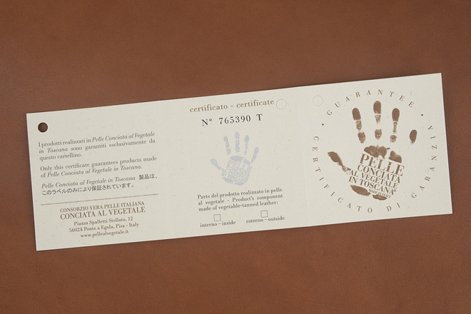 采用奢侈品牌使用的意大利Vera Pelle协会认证植鞣牛皮制作。