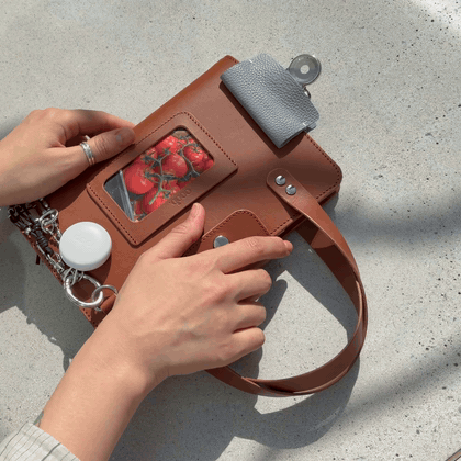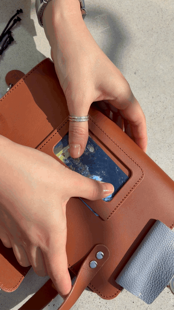 由于所用皮革的特性,初次使用时内部收纳或口袋部分可能会感觉有些紧。随着产品的使用,皮革会逐渐变软并变得宽松。