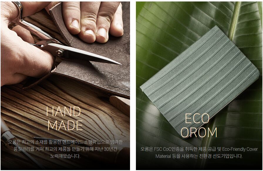 오롬은 지난 30년 동안 고객을 위한 프리미엄 고급 문구제품을 제작해왔습니다. 엘크 가죽에 대해 더욱 관심이 생기신다면 오롬 엘크가죽 시리즈를 살펴보세요 (보러가기 클릭)