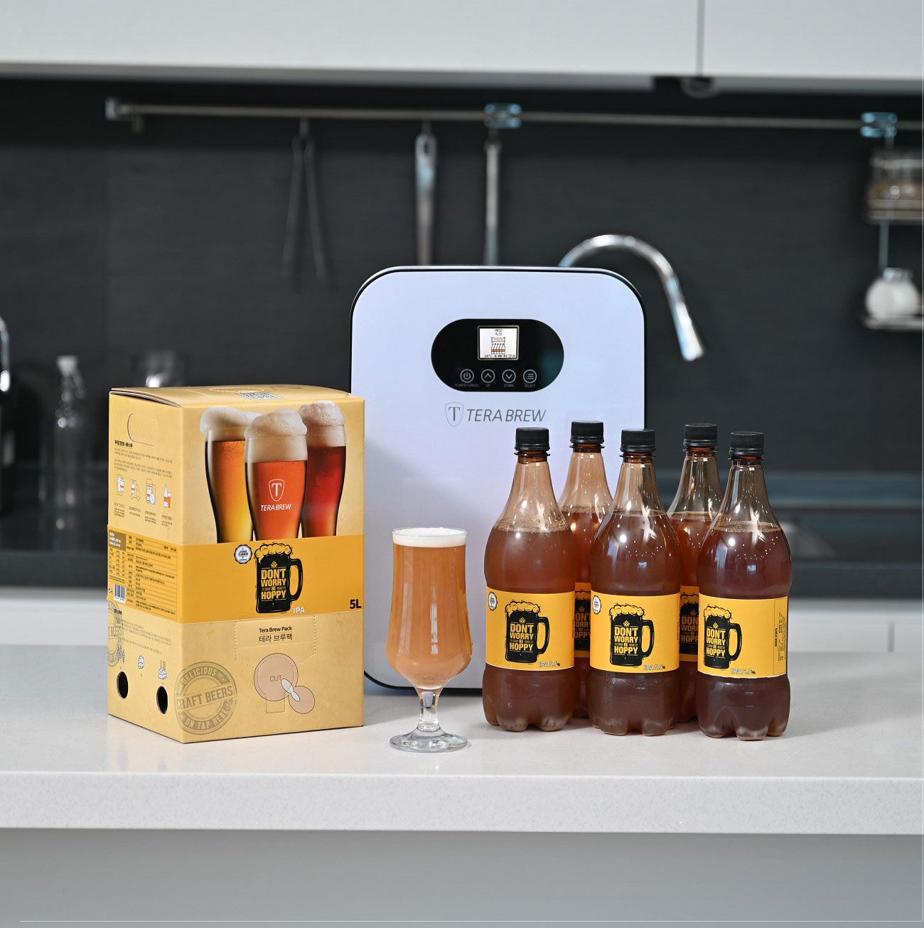 맥주품평회, 그리고 테라 브루의 연구와 실험을 통해  선별된 레서피로 만들어 보고, 해외에 홈 브루잉 관련한 수십가지 제품을 구입해 테스트해보고 300여회 이상 걸친 Test 끝에 테라 브루의 방법과 브루팩의 레서피와 포장및 생산방식에 대한 컨셉을 확정했습니다.