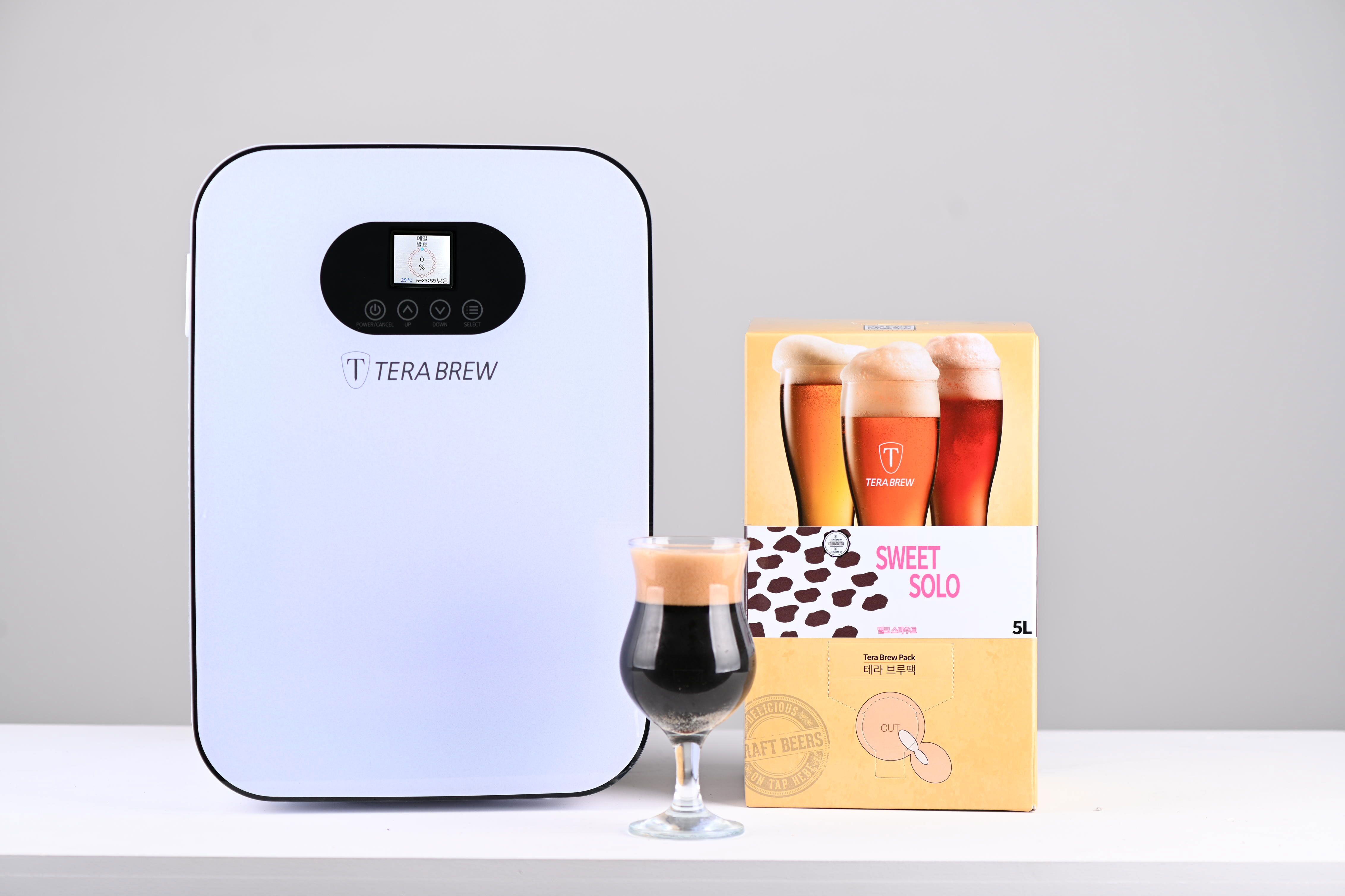 브루마스터가 맥주원재료인 몰트,홉,부재료등을 가지고  정성껏  만들어진 맥즙을 담은 브루팩(5리터) 을  테라 브루에 넣어, 발효,숙성,보관의 온도,시간을 정확하게 자동으로 제어하여   편리하게 맥주를 만들어주는 스마트 홈 브루잉