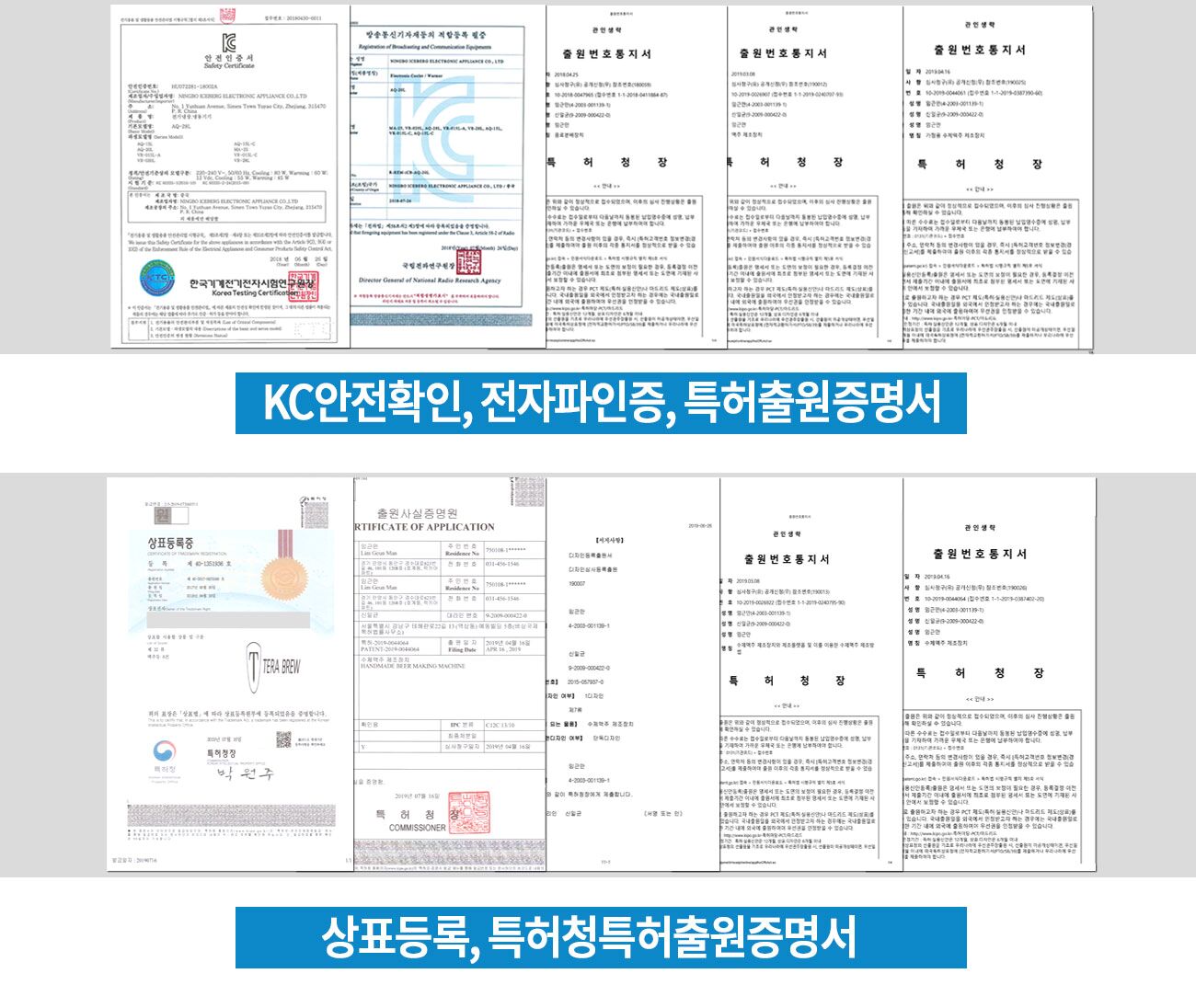 국내 KC인증,특허등록및 특허출원