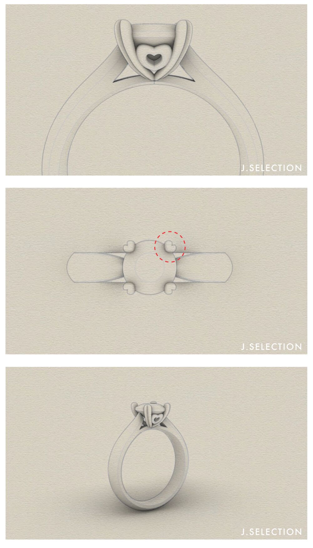 - 스톤을 물리는 'Prong setting 프롱 세팅(발 물림)'을 하트 쉐입으로 디자인하여, 제이셀렉션만의 감성을 불어넣었습니다.