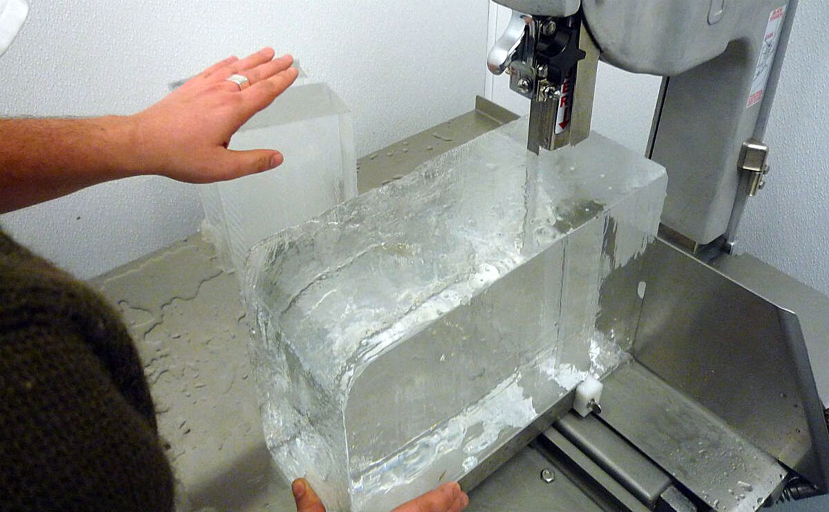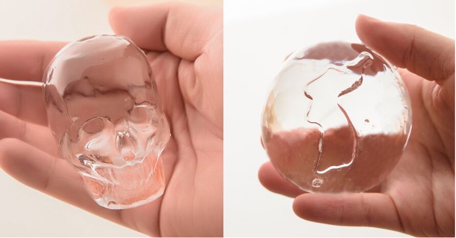 네 맞습니다, 고급 바에서 투명한 프리미엄 얼음을 보신적 있으실거에요. 사진과 같이 얼음 블럭을 깍아서 만드는 방식으로 공정이 까다로워 접하기가 어렵고 형태가 구형, 큐브와 같이 제한적입니다.