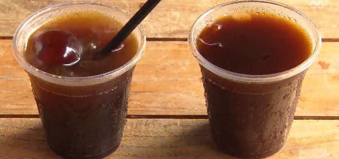 얼음이 녹아 묽게 희석된 커피