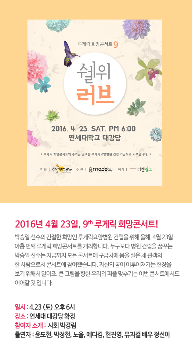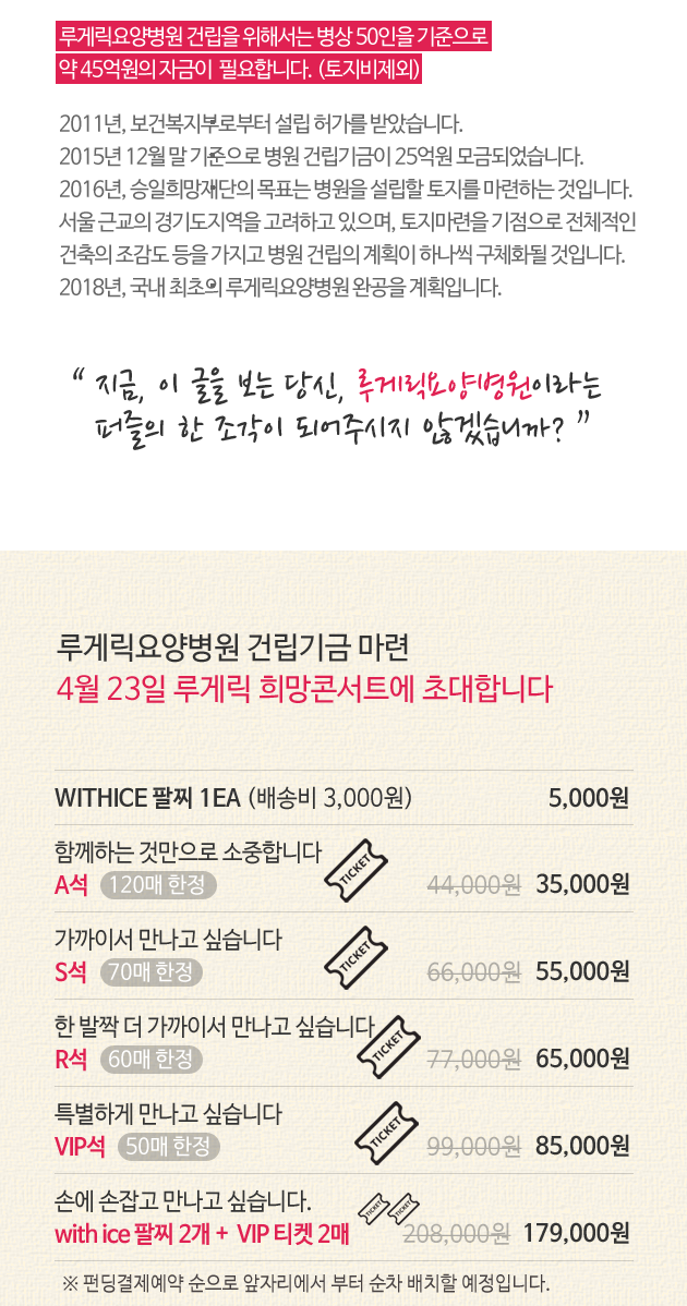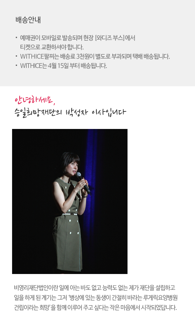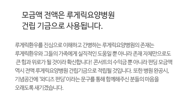 [루게릭 희망콘서트9] 티켓은 콘서트 당일 [와디즈 티켓]부스에서 수령 가능하십니다.