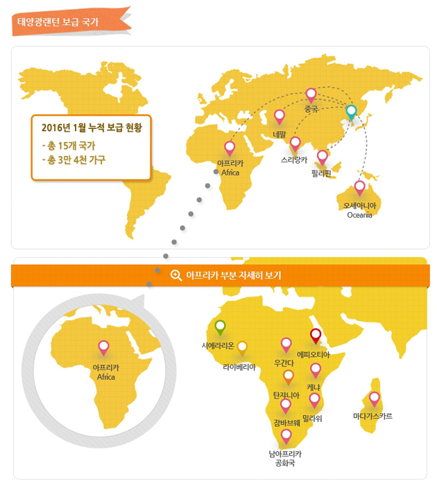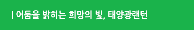 이 상황을 해결할 수 있는 유일한 대안이 바로 태양광랜턴입니다. 아프리카 아이들이 등유램프 대신 태양광랜턴을 사용하게 되면 연료가 들지 않아 가계경제에 부담이 되지 않고, 등유램프를 사용하지 않으니 화재위험 및 유해물질에 노출될 필요도 없습니다.