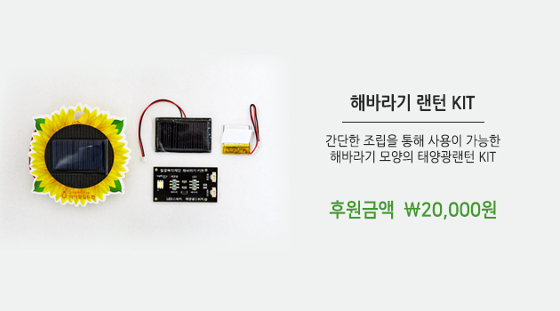* 해바라기 랜턴 KIT 구성 : 태양광판넬, 배터리, 골지리본, 회로기판